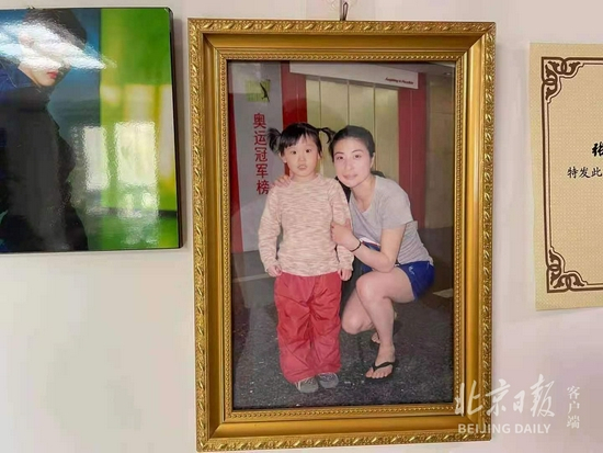 今天,北京日报客户端记者在张家齐家中,和她的父母一起见证了这枚金牌的诞生。在张家齐的家中,有一面墙上贴满了她从小到大的照片。其中有一张她小时候和郭晶晶的合影,格外引人注目。