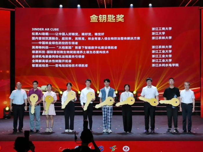 现代农学院刘鹏同学的项目《国内珍稀多色彩、耐强光、耐高温、特种苔藓的选育驯化及繁育》、经济管理学院于滢同学的项目《英弗特科技——“大档案观”背景下智能数字化建设领航者》、食品与健康学院严研同学的项目《命运多舛,历久弥坚——一个新农人求知创业成长的艰辛历程》和数学与计算机科学学院单靖淳同学的项目《鱼跃笼门——用鱼肉小笼包撬动乡村经济新发展》,获主赛道和青年红色筑梦之旅赛道银奖。其中,《国内首创双源融合,超效率、高精准,林业有害入侵生物防治整体解决方案——中国林业绿色防控的引领者》和《英弗特科技——“大档案观”背景下智能数字化建设领航者》获“金钥匙奖”(全省8项),将获得由浙江省国家大学生科技园提供的落地激励政策。
