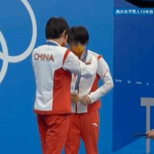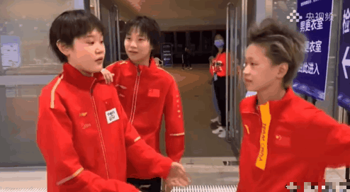 张家齐、陈芋汐、全红婵拥抱
