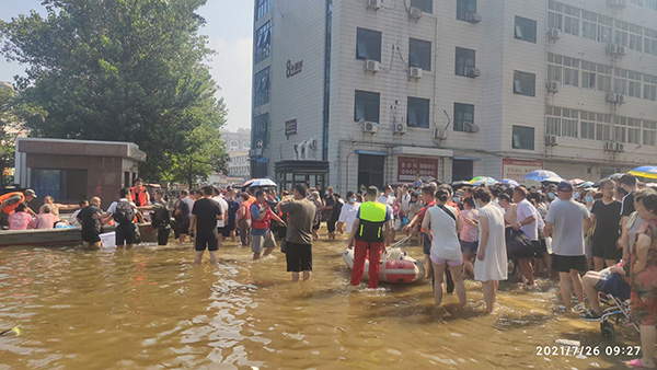 后来洪水还是进来了。26日上午,(情况)不算乐观,我早上起来,看到家属楼地下室都淹完了。