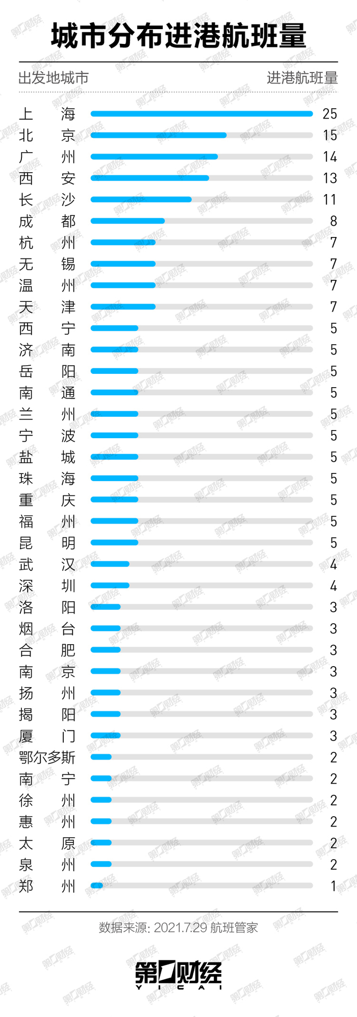 第一财经记者通过航班管家的数据,查阅了7月20日到24日从全国各地飞入张家界的进港航班情况。