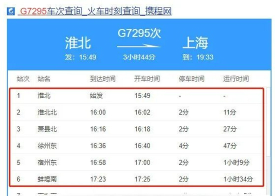 其中G7295经过淮北、淮北北、 萧县北、宿州东、蚌埠南。