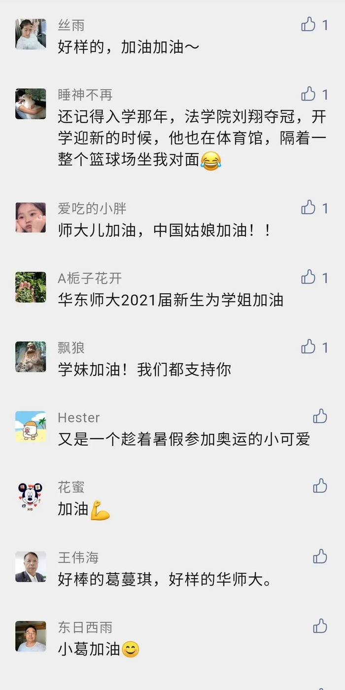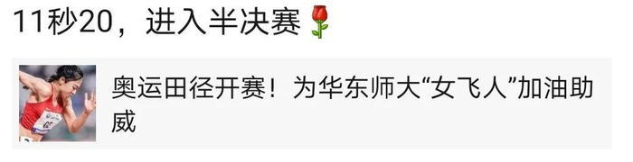 东京奥运会田径比赛正式开战,华东师范大学学子葛曼棋在女子100米预赛中跑出了11秒20,成功晋级半决赛,另外两名中国选手梁小静和韦永丽的成绩分别为11秒40和11秒48,无缘半决赛。