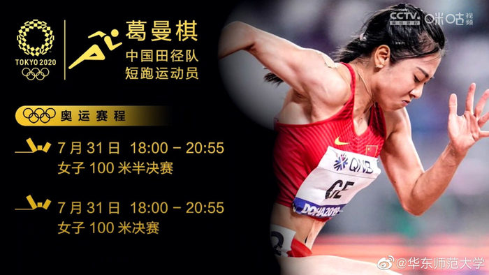 葛曼棋是华东师大体育与健康学院2017级本科生,这是“女飞人”代表中国第二次征战奥运,本届奥运会上,葛曼棋参加女子100米、4×100米接力两个项目。