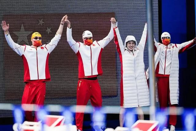 7月29日上午,中国组合杨浚瑄、汤慕涵、张雨霏和李冰洁力挽狂澜,以打破世界纪录的成绩夺得此项目的冠军,收获本届奥运会中国代表团的第14枚金牌。这是中国游泳在历届奥运会历史上第一枚接力金牌,低调出征的她们在东京改写了中国游泳的历史,打破了美澳两国在该项目上25年的冠军垄断。