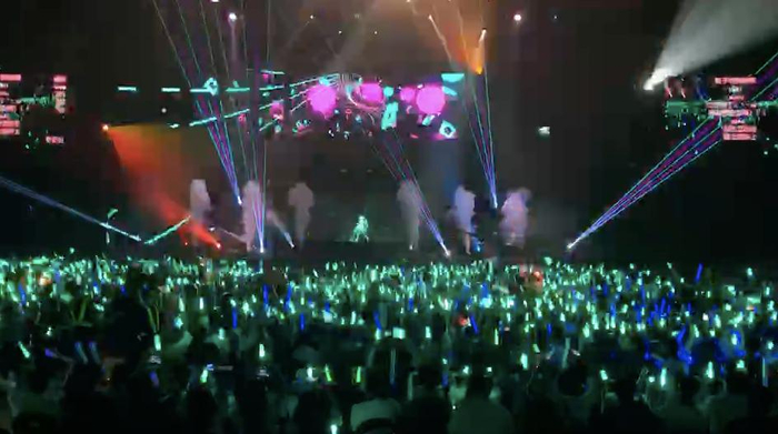 在初音未来压轴出场时,全场迎来了整齐划一的荧光绿应援色以及应援call。