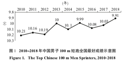 近10年, 特别是我国经济社会发展进入新时代以来, 在党中央、国务院的高度重视和坚强领导下, 我国体育正从体育大国向着体育强国迈进。体育强国的一个重要表现是竞技体育的高质量发展, 要实现世界人民关注高、参与度高的竞技体育项目的成绩突破, 如田径、足球等, 也就是我们常说的“金牌的含金量要高”“成绩的被认可度要强”。田径被称为“运动之母”, 其重要性不言而喻, 在世界范围内有着极高的关注度, 其中, 100 m短跑是历届大赛中关注度最高, 影响力最大的运动项目。