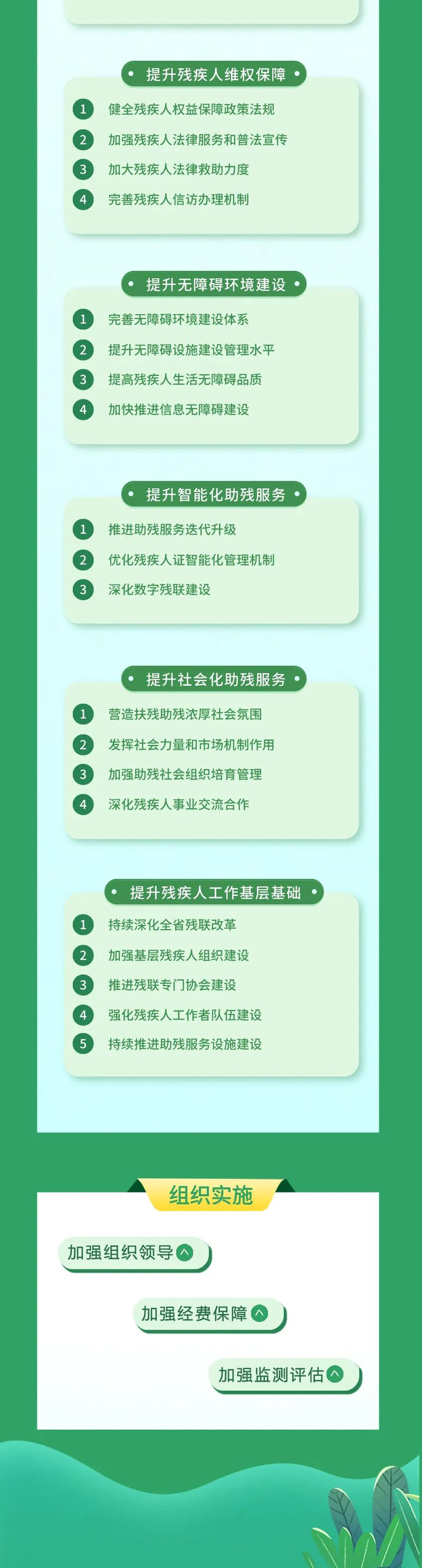 推进交通设施、旅游景区、文化场馆、商圈、市场、公共体育场馆、医疗机构等公共场所无障碍服务大提升。完成残疾人家庭无障碍改造3万户以上。