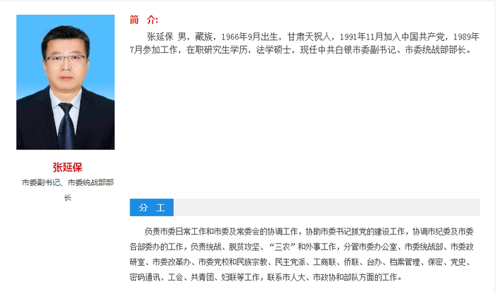 官方消息称,张延保为白银市政府市长候选人。