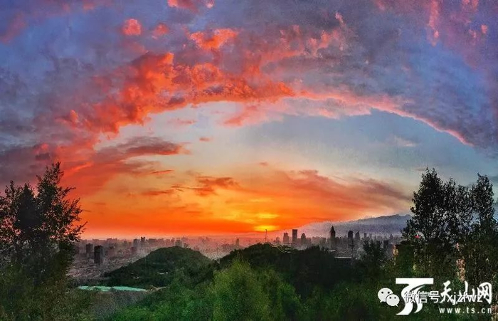 8月4日早晨,乌鲁木齐东边天空的云层“建造”了一座大穹顶,在朝霞的映衬下,穹顶下的光线迷人。天山网-新疆日报记者张万德摄
