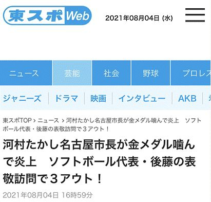 《东京体育》称,这本应是一个令人欣慰的场景,然而河村隆之随后在表彰后藤希友时“突然”摘下口罩咬了一口金牌。《东京体育》痛斥,河村隆之涉嫌“损坏他人财物”、“性骚扰”、“违反防疫规定”,并讽刺道可谓是“三振出局”。