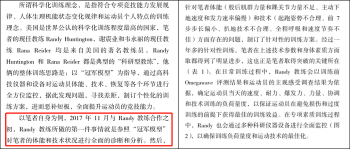 苏炳添在2019年与他人合作发表的论文《新时代中国男子100m短跑:回顾与展望》中,还曾详细介绍过兰迪参照“冠军模型”对他的体能和技术状况进行全面诊断和分析的过程。