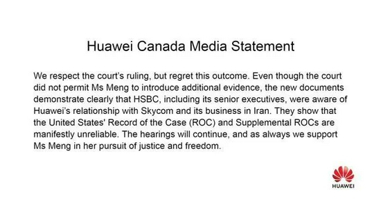 对于7月9日的法庭判决,华为加拿大公司曾发表声明称: