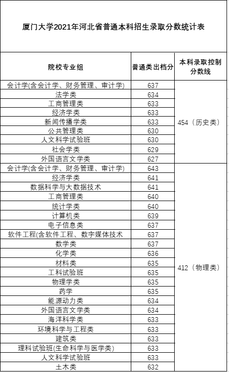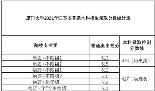 厦门大学2021年普通本科招生录取统计(普通一本)