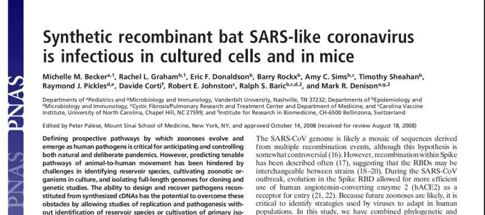 该论文的通讯作者是被称为“冠状病毒之父”的美国北卡罗来纳大学流行病学系教授拉尔夫·巴里克。