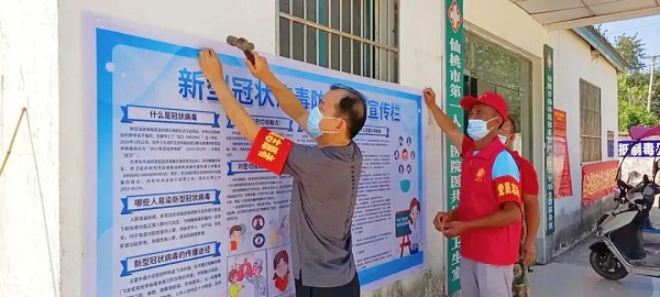 与此同时,该院乡村振兴驻村工作队的疫情联防联控工作也在紧锣密鼓地开展中。在该院所驻的杨林尾镇革新村,检察干警联合村“两委”利用宣传车、宣传栏等形式向村民宣传近期防疫形势,开展走访排查、信息核查等工作,确保结对包保村疫情防控工作不留死角。