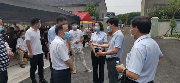 8月4日下午,受湖北省检察院党组书记、检察长王守安委托,该院党组成员、副检察长金鑫到武汉市尤李社区,调研省院下沉工作队配合开展居民核酸检测工作情况。