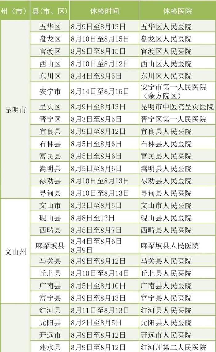 原标题:【提醒】云南省2021下半年男兵体检计划出炉!体检时间、地点看这里→