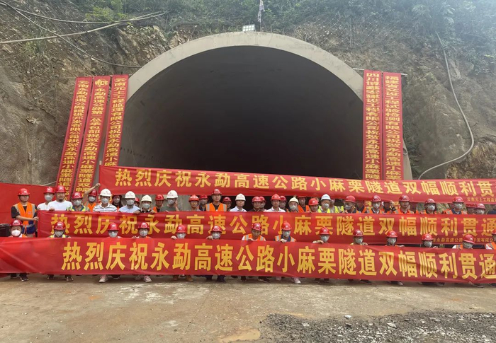 近日,永勐高速小麻栗隧道双幅贯通,这是永勐高速贯通的第9条隧道,标志着永勐高速项目建设实现再突破。