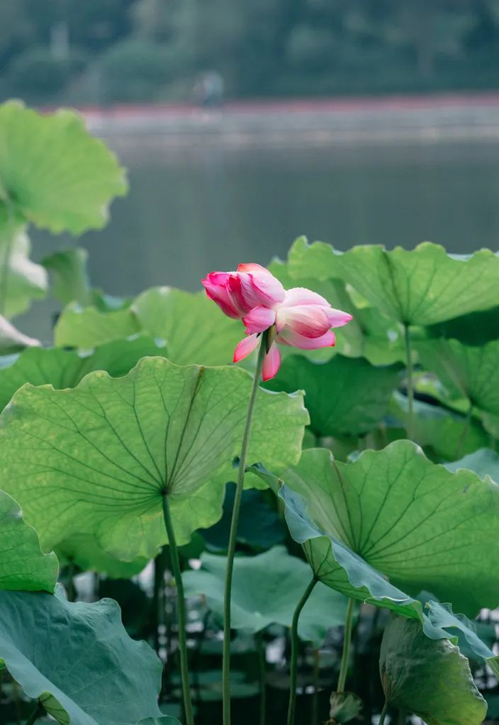 有粉荷亭亭玉立