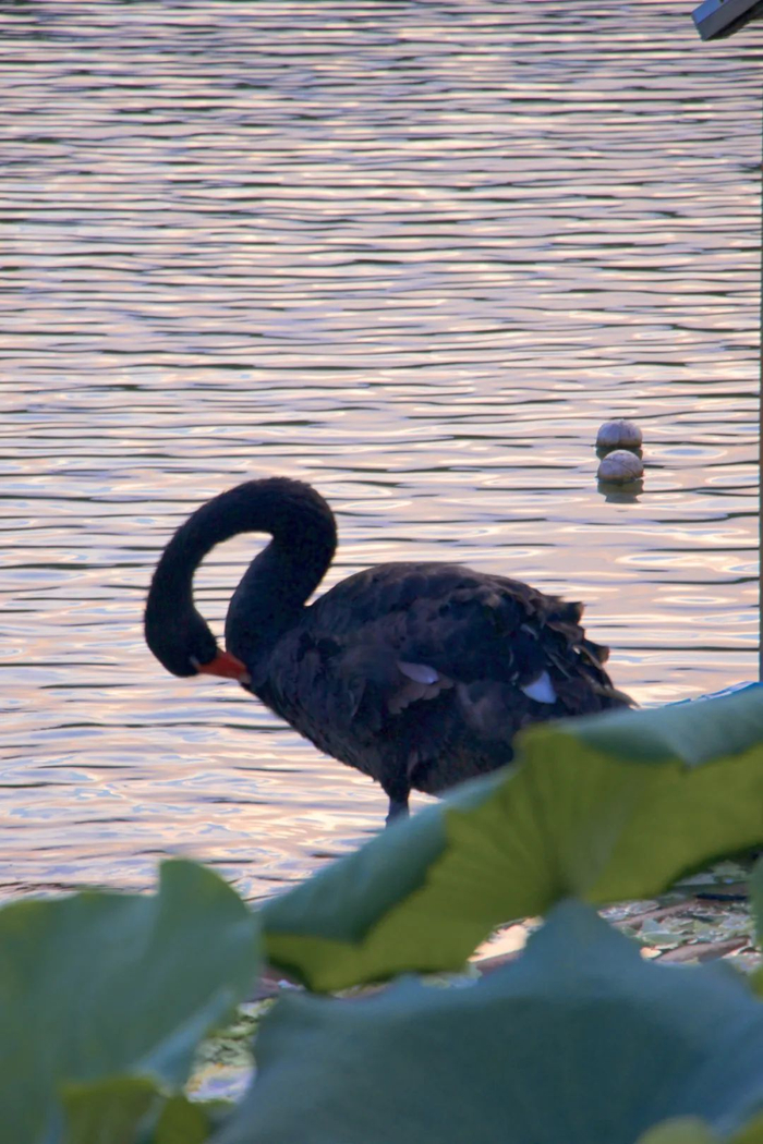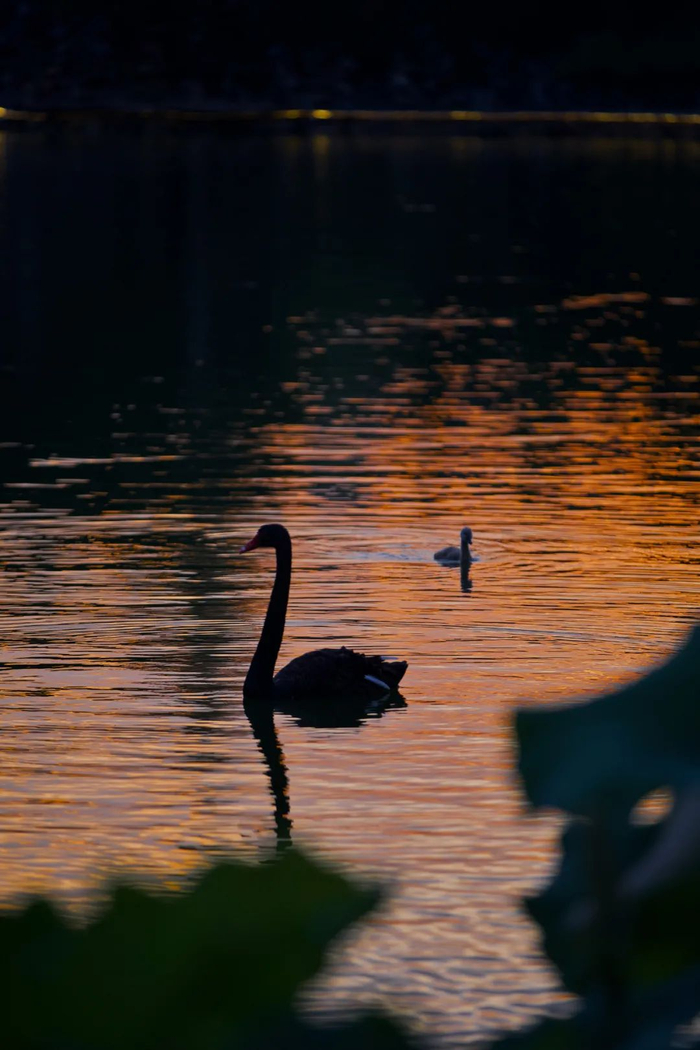 天鹅的倒影在暮色中轻轻