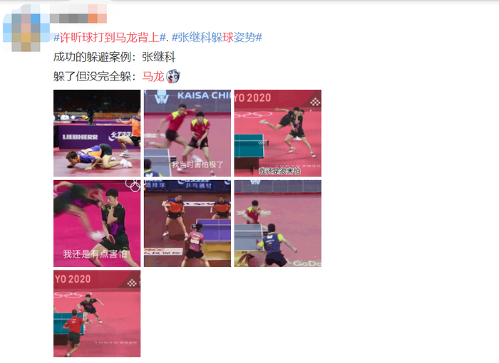 还有网友说马龙本可以躲过球,并截图给配上搞笑的文字。