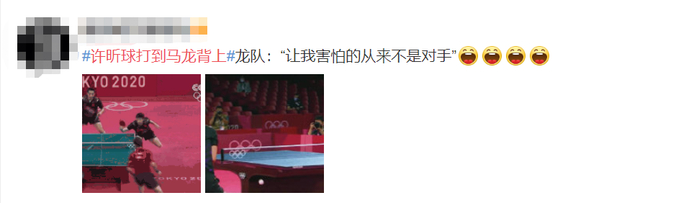 “龙队当时你要像张继科那时候爬下来,可能许昕那个球就过了,哈哈哈哈哈。”
