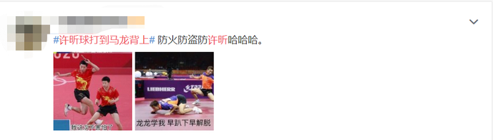 另有网友调侃:“防火防盗防许昕。”↓