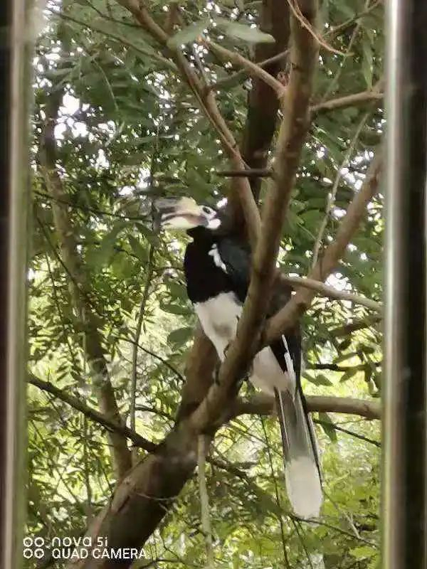 影像是7月31日丁如松在德宏傣族景颇族自治州委党校拍摄的,在今年3月份的一个清晨,也有一只冠斑犀鸟停到了州委党校一户人家的窗口,还用大嘴敲击窗户,像极了在叫人起床。“它在我家三楼窗边的树枝上跳来跳去,好像在和我们打招呼一样”,丁如松说。