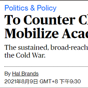 8月9日,美国外交政策学者、约翰斯·霍普金斯大学特聘教授、彭博社专栏作者布兰兹(Hal Brands)发表评论文章,将此提案描述为“美国政府动员学术界对抗中国”的举动。