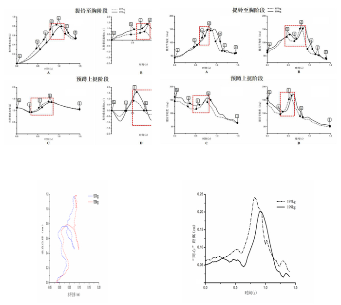 项目组在科技服务过程中,还拍摄并分析了中国举重队其他优秀运动员的技术影像资料,发现男子81公斤级吕小军在“下蹲挺”过程中,存在下蹲制动时间过长的问题,这将对紧接着的上挺发力动作造成影响,反馈报告引起了吕小军教练的重视。
