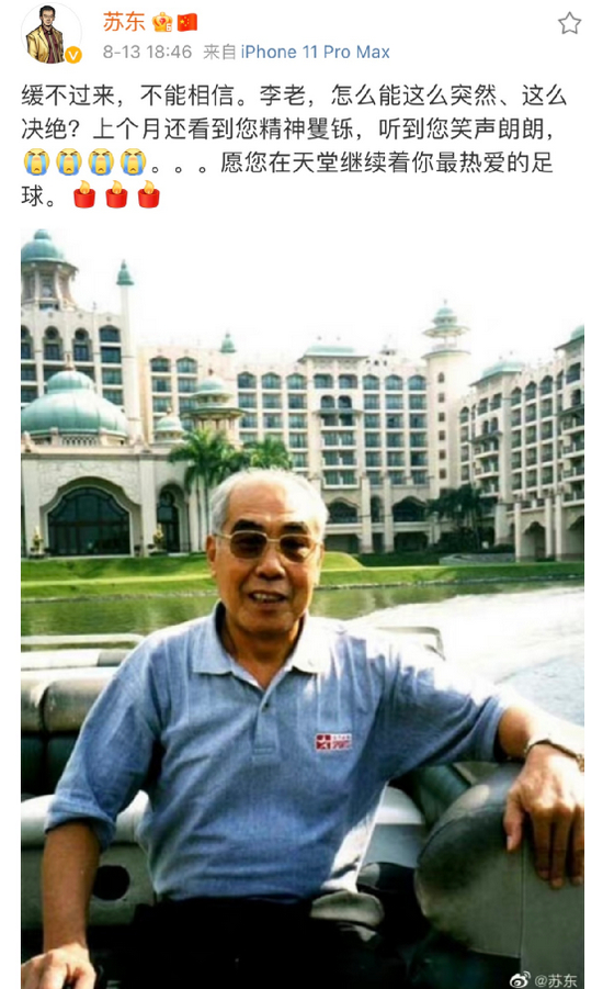 北京时间8月13日,中国职业化见证者、天津足球名宿、著名足球解说员李元魁去世,享年87岁。在得知李元魁去世的消息后,天津足球名宿高复祥第一时间表示了惋惜,并用“一名非常令人尊敬的老足球人”形容李元魁。