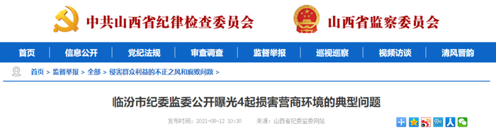 原标题:临汾市纪委监委公开曝光4起损害营商环境的典型问题
