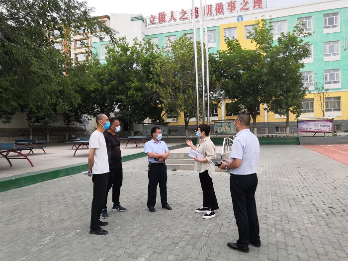 阿勒泰市纪委监委党风室与第三纪检监察组重点针对校园安全、教师减负工作落实情况,对该市各中小学进行检查,查看各学校对《自治区中小学教师减负清单》梳理问题整改落实情况,督促该市教育局切实履行好主体责任,切实解决中小学教师队伍负担过重问题。图为该市第三纪检监察组干部在校园内了解情况,推动减负工作落地。(阿勒泰市纪委监委 陈梦莹/摄)