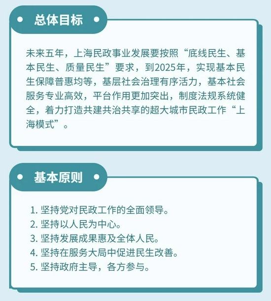 《规划》明确了“十四五”时期上海民政事业的主要目标、重点任务和重大举措,对民政部门更好履行基本民生保障、基层社会治理、基层社会服务等职责作出部署。来看图解↓