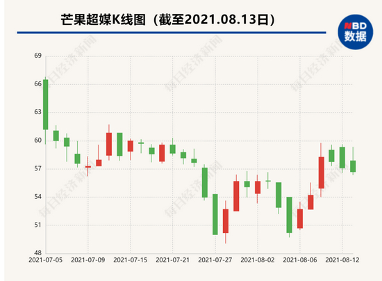 受此消息影响,在8月12日开盘后,芒果超媒股价一度上涨3%。但随后,其股价就一路走低,截至当天收盘,芒果超媒股价下跌1.16%,报57.1元。8月13日,截至中午收盘,芒果超媒股价跌0.72%,报56.69元,市值1009亿元。