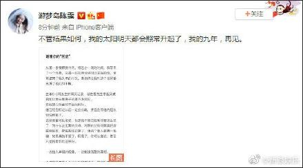 12日下午,陈露再发长文回应霍尊,“不管结果如何,我的太阳明天都会照常升起了,我的九年,再见。”随文晒出疑似霍尊发言的一系列聊天记录。