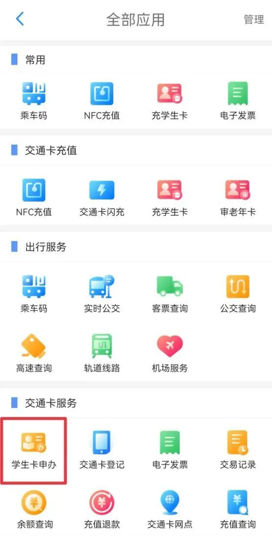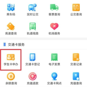 ①下载“重庆市民通”APP并注册登录后,点击首页→全部→交通卡服务→学生卡申办。