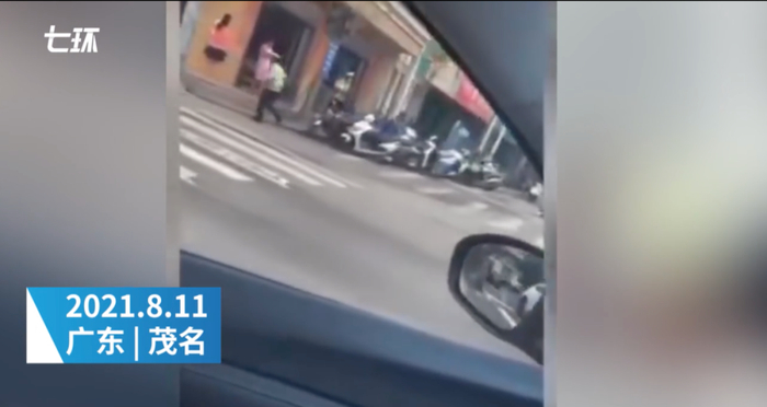 一个细节是,现场视频还显示,被砍交警倒地之后,现场还有两名穿制服的人,他们上了警车,砍人者则骑上车追赶警车。男子骑车到警车左侧,右手举着刀比画。警车随即离开,该男子也驾车离开。