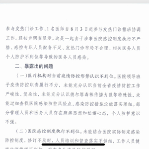 江苏省卫健委在情况通报中也指出,这是一起由于涉事医院“院感制度执行不严格、感控专职人员配备不足、发热门诊布局不合理、相关医务人员个人防护不到位等导致的医务人员感染”。