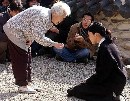 李丞涓向韩国慰安妇受害者跪拜道歉。