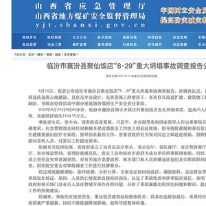 原标题:山西省临汾市襄汾县聚仙饭店“8·29”重大坍塌事故调查报告公布