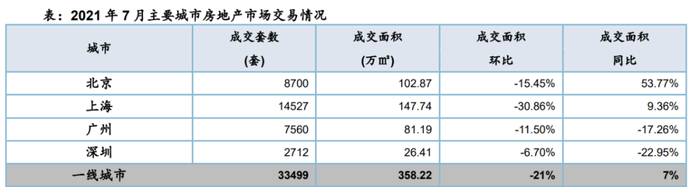 进入下半年首月,新房市场成交情况却“画风突变”。中指研究院指出,7月楼市新房成交量同环比均降。分城市来看,7月一线城市成交面积环比降幅为21.34%,同比上升7.12%。二线代表城市成交面积环比下降11.47%,同比下降2.54%。三线代表城市成交面积较上月下降17.42%,同比下降26.01%。