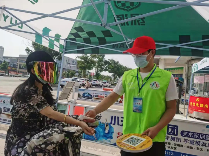 暑期留校的计算机科学与工程学院2020级朱天骐同学接到南京市秦淮区正在招募疫情防控志愿者的通知,第一时间放下了手里的事情,报名参与。