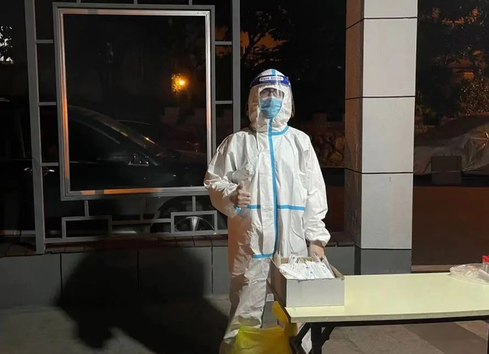 在核酸检测点,他负责清点队伍人数,维持队伍秩序,确保队伍顺序正确、有序。晚上22点多,他身着防护服,前往包含了密切接触者所在的居民楼,在南京三十多度的夜晚里层层扫楼,提醒尚未完成核酸的居民尽快做核酸。工作虽然繁琐和疲惫,但他丝毫没有懈怠,这份工作带给他的是疫情逐渐缓和后的满足。