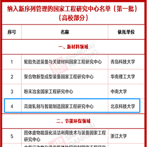 国家工程研究中心是国家创新体系的重要组成部分,开展中心优化整合工作是构建新时期国家战略科技力量的重要举措。为落实党中央、国务院战略决策部署,2021年2月,发改委正式启动国家工程研究中心、国家工程实验室优化整合工作,明确聚焦“四个面向”,以“减量提质”原则,通过调整、充实、整合、撤销等方式进行优化整合。北京科技大学高度重视此次国家工程中心的优化整合与评价工作,迅速成立专项工作组,明确定位思路,多次召开专题研讨会推进落实优化整合评价的整体材料编制工作,在原有先进材料研发、装备与控制技术基础之上进行经优化整合,将智能制造、绿色制造确定为进行自主创新、引领发展的新技术领域,并严格按照要求进行评价报告和二十余项数据资料的整理与汇编。在专项工作组全体成员的共同努力下,我校工程研究中心顺利通过发改委优化整合评价,纳入第一批新序列管理名单。