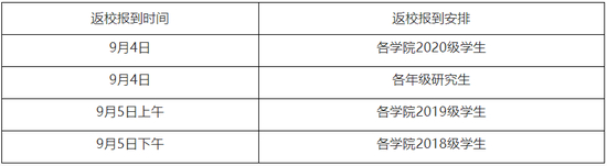 2.2018、2019、2020级有补考课程的学生,9月2日返校,9月3、4、5日安排补考(中高风险地区学生补考时间视疫情情况,待这部分学生返校后另行安排)