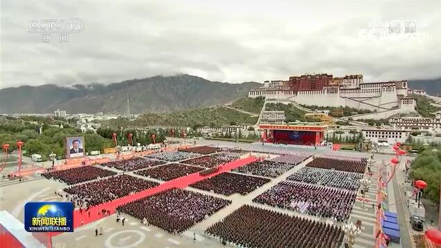 新华社拉萨8月19日电(记者林晖、孙少龙、白少波)七十载沧桑巨变,九万里风鹏正举。19日上午,西藏各族各界干部群众2万多人欢聚在布达拉宫广场,热烈庆祝西藏和平解放70周年。中共中央总书记、国家主席、中央军委主席习近平在贺匾上题词“建设美丽幸福西藏 共圆伟大复兴梦想”。中共中央政治局常委、全国政协主席、中央代表团团长汪洋出席庆祝大会并讲话。