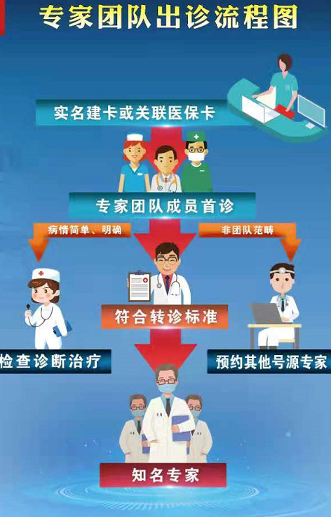 根据知名专家团队转运机制,首诊患者不再直接挂知名专家个人号,而是挂知名专家团队号就诊,由初诊医生判断是否需要转诊专家。