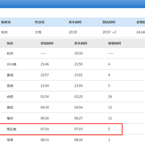 k892次列车20:30从杭州始发,20:57+1到终点站大同,历时24小时27分,全程共有22个停靠站,其中途径商丘南站。